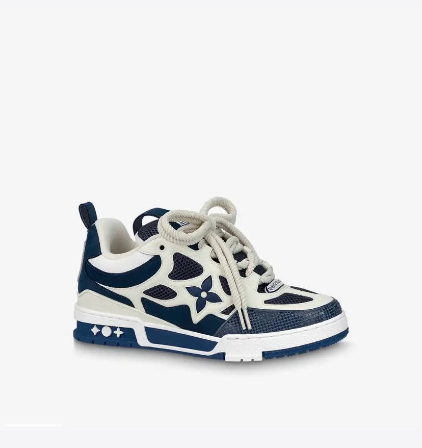 O tênis LV Skate faz referência a um design inspirado nos anos 90, visto pela primeira vez no desfile masculino Fall-Winter 2022 da Louis Vuitton. Seu elaborado cabedal bicolor com detalhes em Monogram Flower combina malha técnica, couro de bezerro e camurça. Este modelo se destaca pelo colarinho acolchoado, cadarços duplos técnicos e solado de borracha bicolor decorado com Monogram Flowers.